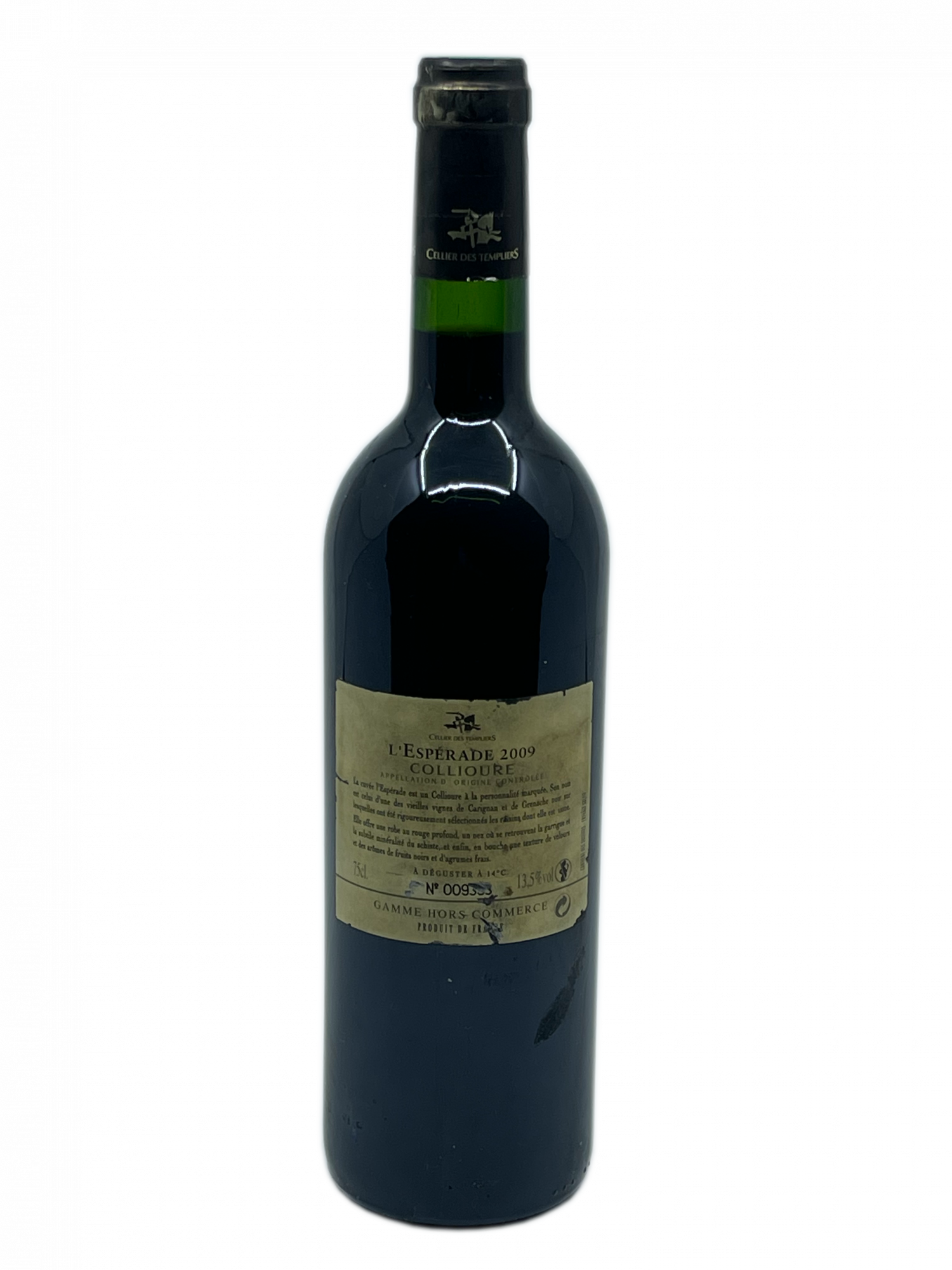 La cuvée l’Espérade 2009 est un Collioure à la personnalité marquée. Son nom est celui d’une vieille vigne de Carignan et de Grenache Noir sur laquelle ont été rigoureusement sélectionnés les raisins dont elle est issue. Avec le temps, elle offre une robe grenat foncé, un nez où se retrouve la garrigue et la subtile minéralité du schiste et enfin, en bouche une texture de velours at des arômes de fruits noires et d’agrumes frais.