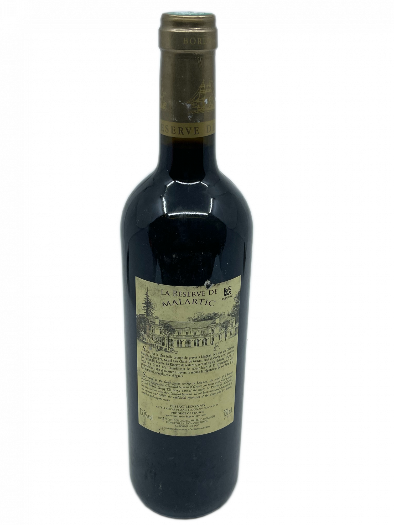Situés sur la plus belle croupe de graves à Léognan, les vins du Château Malartic Lagravière, Grand Cru Classé de Graves, sont élaborés avec passion par la famille Bonnie. La Réserve de Malartic, second vin du Château, reçoit, à l’égal du Grand Cru Classé, tout le savoir-faire et le dynamisme des propriétaires afin d’honorer à travers le monde la réputation de ses vins à la fois intenses, complexes et élégants.
