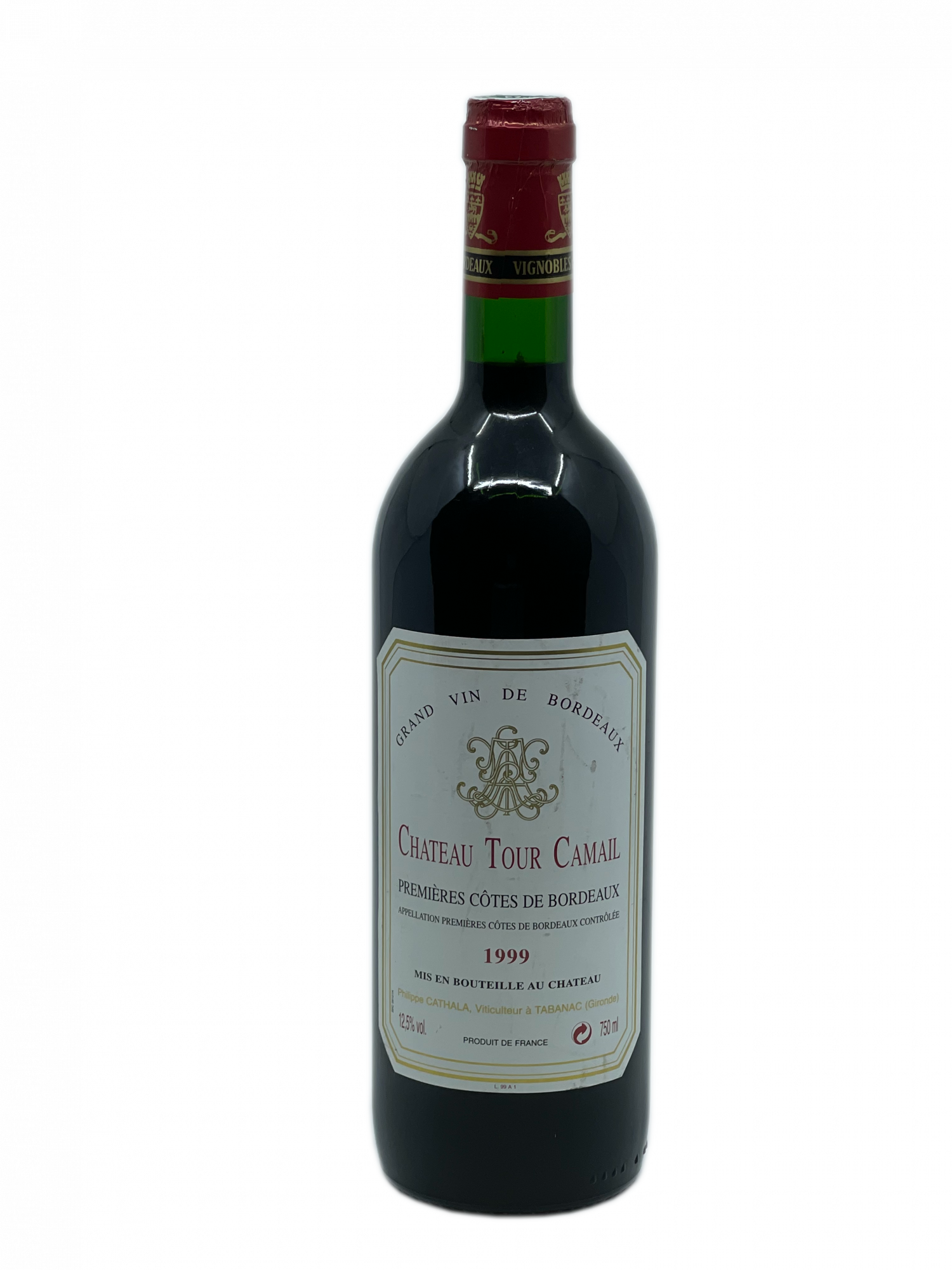 Ce millésime 1999 a été élaboré par Philippe Cathala, viticulteur à Tabanac en Gironde (Château La Clyde) à partir des cépages traditionnels bordelais (merlot, cabernet sauvignon et cabernet franc) issus de parcelles de vignes âgées de plus de 40 ans. Celles-ci contribuent, sans nul doute, à la qualité de ce vin qui ne se limitent pas à une superbe robe. Agréablement fruité avec quelques notes de gibier, son bouquet ouvre la voie à une solide structure, tannique mais sans sévérité. En bouche la rondeur est de rigueur et conserve avec le temps, une bonne acidité pour équilibrer l’ensemble. Les petites baies rouges et noires dominent la palette aromatique qui s’enrichit avec l’âge de belles notes d’évolution (sous-bois, champignon). Les quelques années en cave lui ont permis de s’assouplir afin qu’il puisse montrer aujourd’hui tout son potentiel.