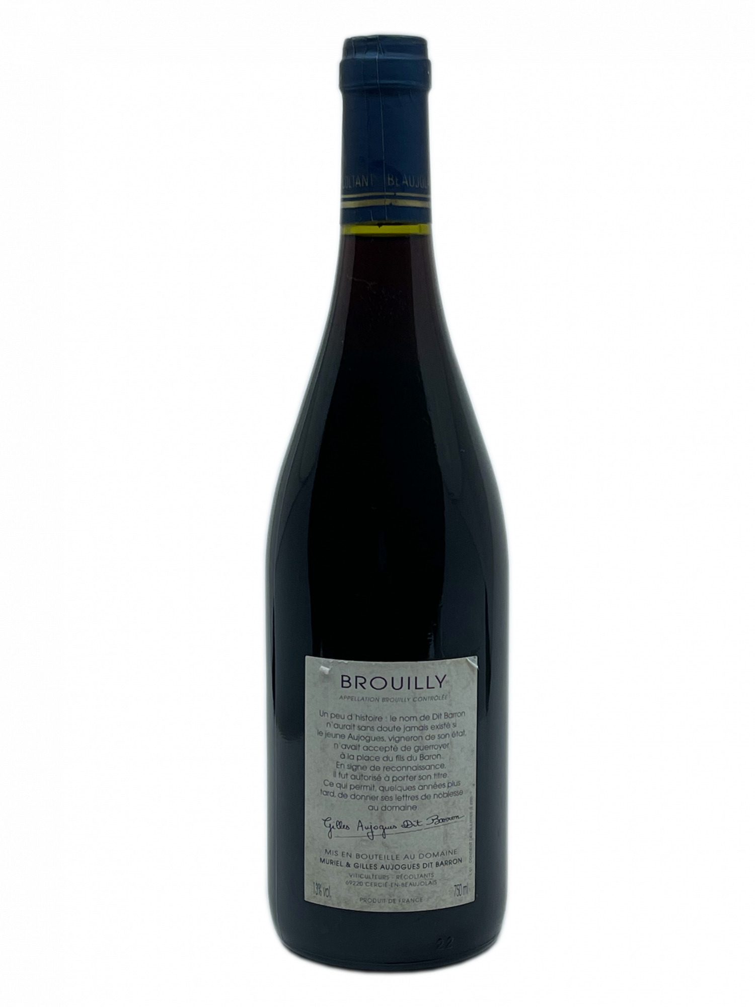 Un peu d’histoire : le nom de « Dit Barron » n’aurait sans doute jamais existé si le jeune Aujogues, vigneron de son état, n’avait pas accepté de guerroyer à la place du fils du Baron. En signe de reconnaissance, il fut autorisé à porter son titre ce qui lui permit, quelques années plus tard, de donner ses lettres de noblesse au domaine.