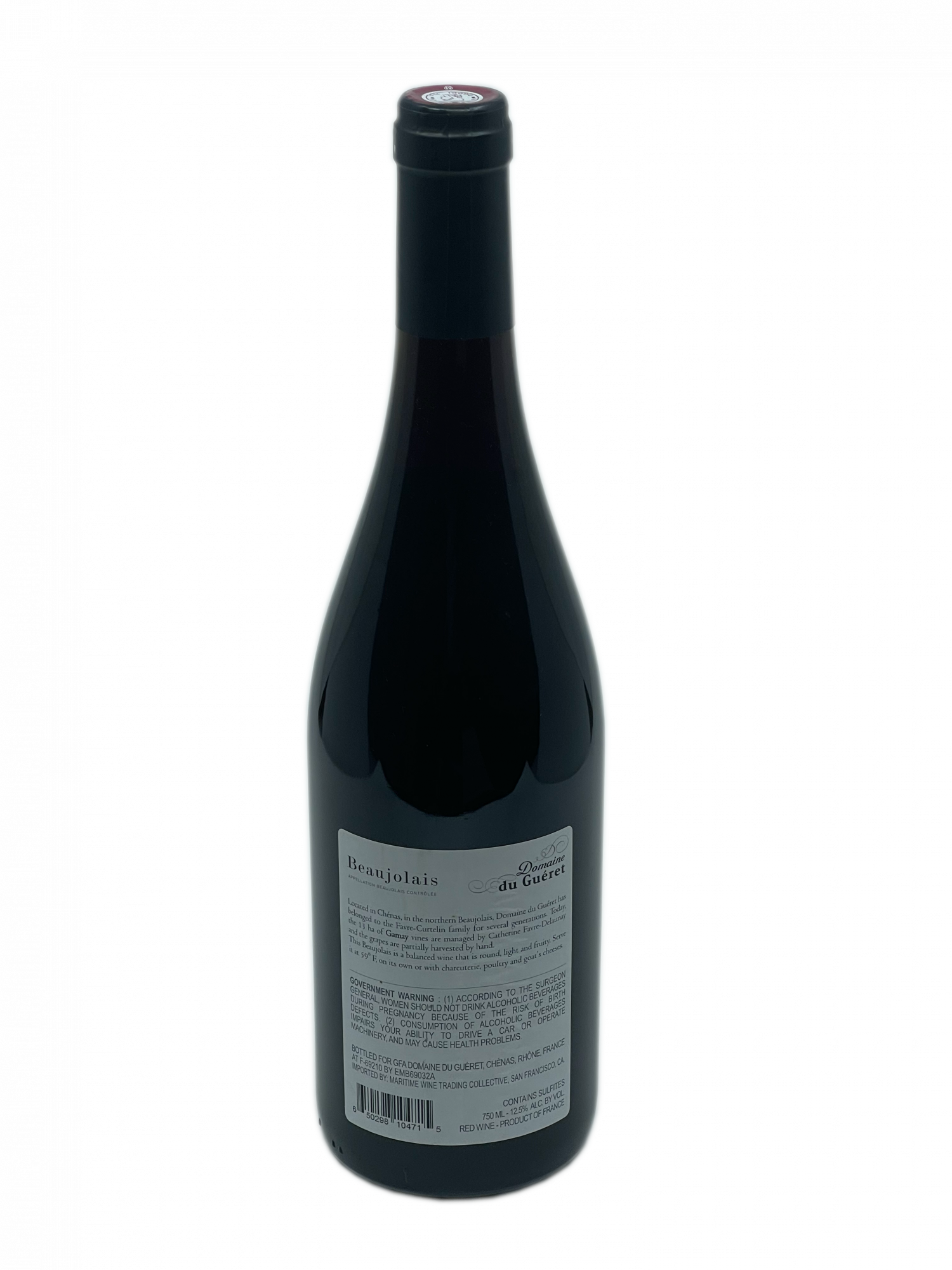 Installé à Chénas, au nord du Beaujolais, le Domaine du Guéret appartient depuis plusieurs générations à la famille Favre-Curtelin, la famille de Catherine Delaunay. Il couvre au total 13 hectares en appellation Beaujolais et Moulin-à-Vent. Les vins sont produits avec de petits rendements et des raisins récoltés à la main. Les vins sont élevés en fûts de chêne.